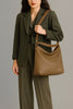 Soft leather shoulder bag with subtle metallic details and a strap with a knitted pattern. It has an extra strap, detachable that can be adjusted to the desired height to be worn cross-body. It closes with a zipper, it is lined, it has an internal large compartment that closes with a zipper and internal pockets for small items.