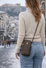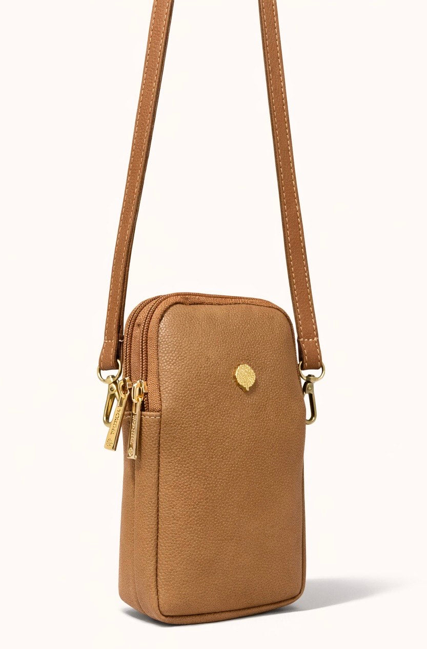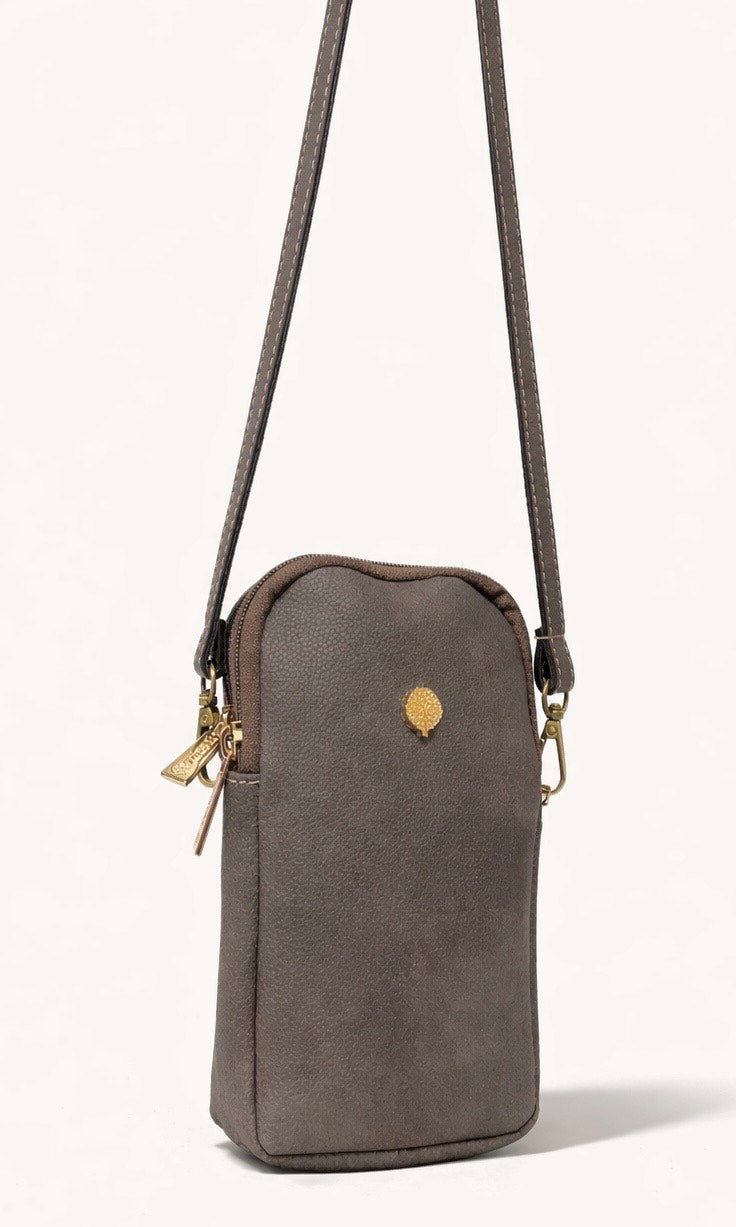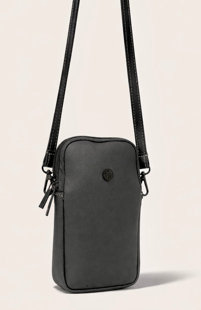 Τσαντάκι κινητού και για μικροαντικείμενα απο τεχνητό δέρμα με μεταλλικές χρυσές λεπτομέρειες και δύο φερμουάρ. Το λουράκι του είναι μη αποσπώμενο, κλείνει με φερμουάρ και έχει και εξωτερική θήκη που κλείνει με μαγνητικό κλιπ