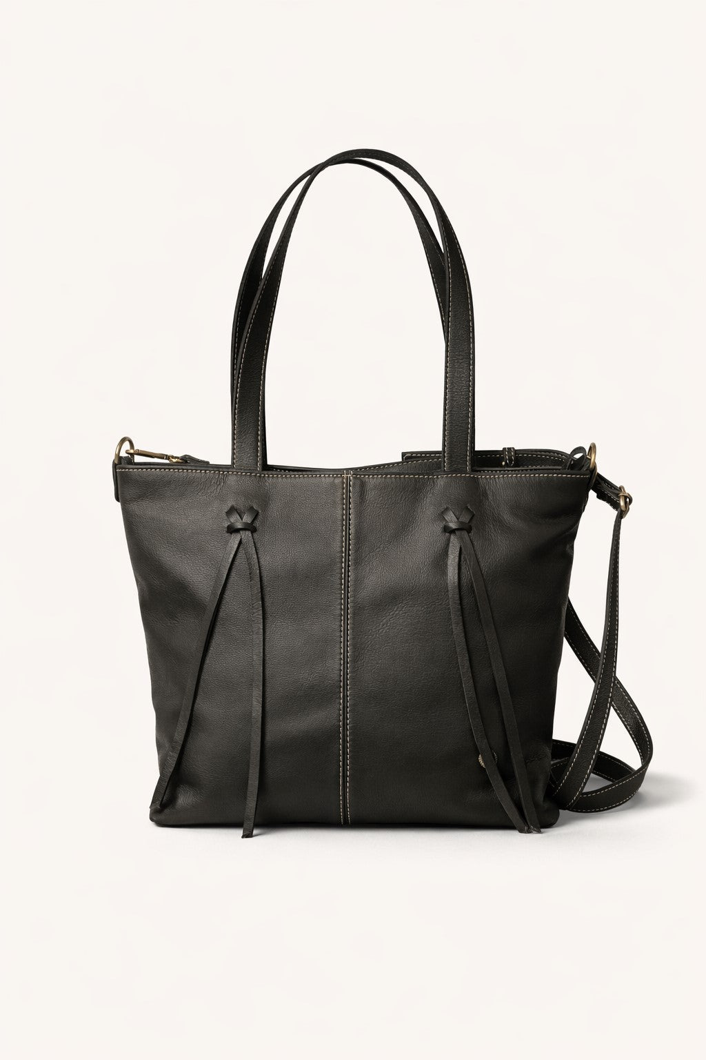 Ευρύχωρη τσάντα ώμου από δέρμα με το σήμα THIROS και με διακριτικές χρυσές λεπτομέρειες. Διαθέτει εσωτερική θήκη, διακοσμητικά λουράκια στο πλάι, είναι φοδραρισμένη και κλείνει με φερμουάρ.