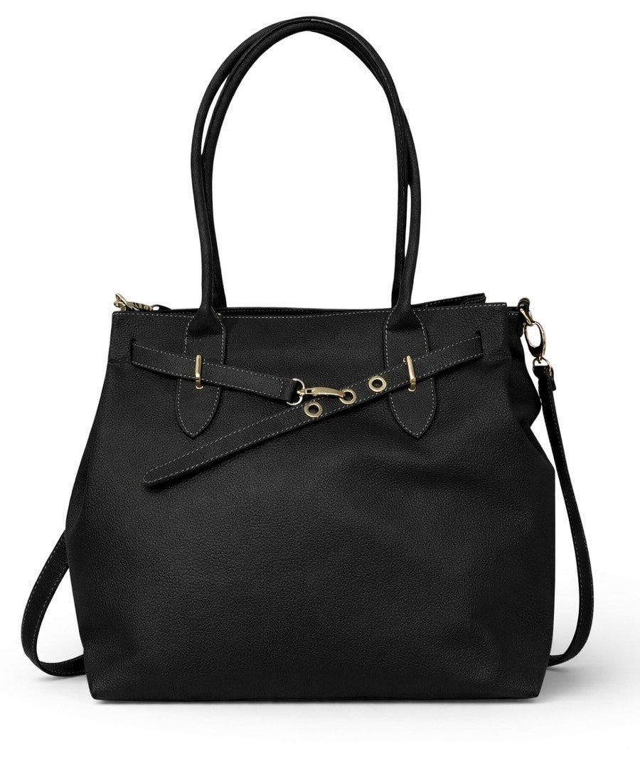 Business τσάντα από δέρμα με διακριτικές λεπτομέρειες και αποσπώμενο λουράκι που ρυθμίζεται στο επιθυμητό ύψος για να φοριέται και χιαστί.