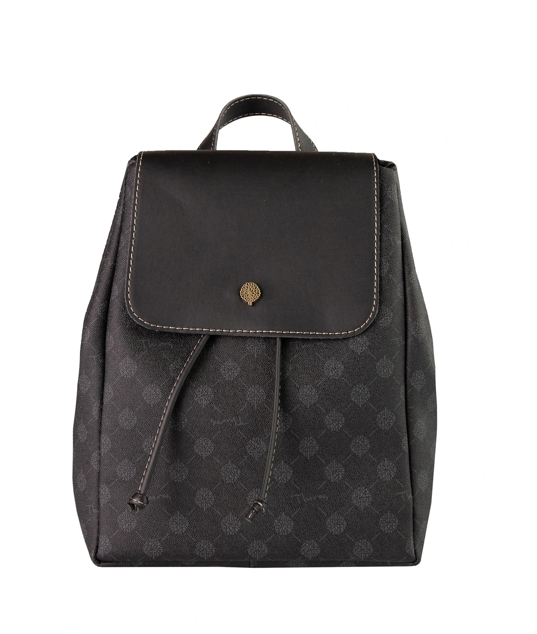 THIROS branded faux leather backpack with subtle gold detailing, pulls with straps and closes with a magnetic clip. It has an internal pocket and the back straps are adjustable to the desired height. It has an elegant and minimal design, ideal for everyday use.